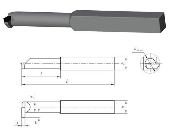 Резец Канавочный внутренний 16х16х170 Т5К10 а=4, m=8