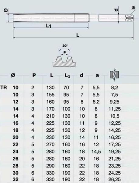 Метчик TR18,0 х 2,0 м/р.Р6М5 для трапецеидальной резьбы