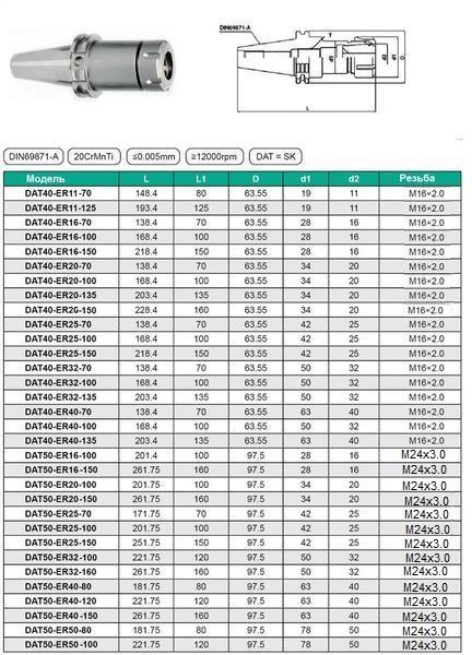 Патрон Цанговый с хв-ком 7:24-40 ГОСТ 25827 исп.2 для станков с ЧПУ под цанги ЕR32 (DAT40-ER32-100) "CNIC"