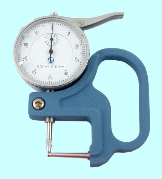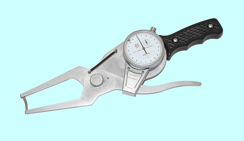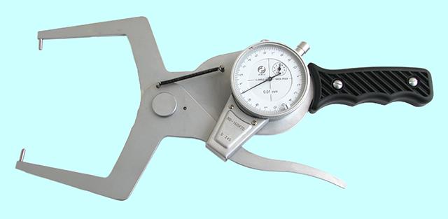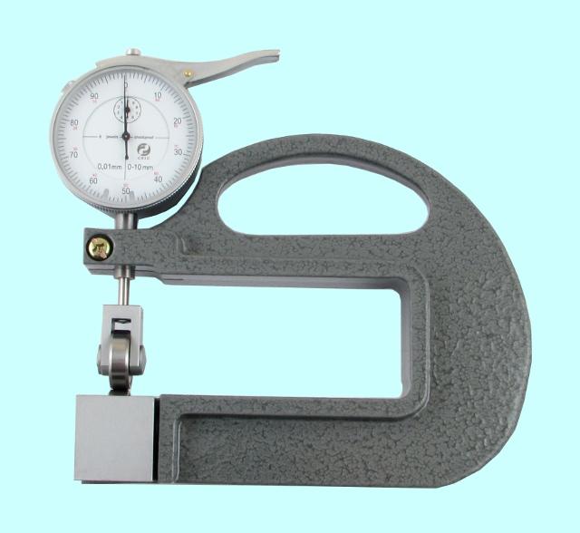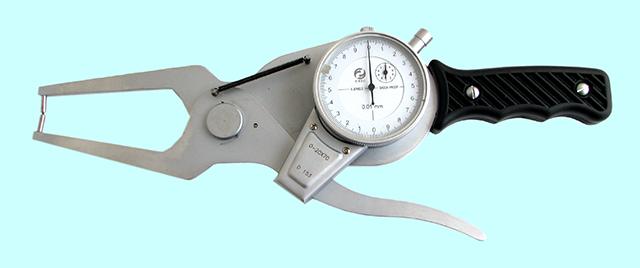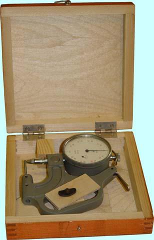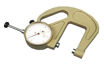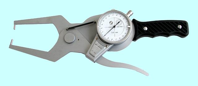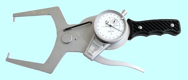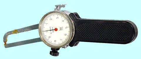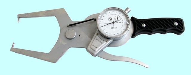 Индикаторный рычажный стенкомер предназначен для измерения толщины стенок труб и других аналогичных изделий. Cостоит из корпуса, отсчетного устройства, неподвижного стержня и измерительного стержня. Перемещение измерительного стержня через систему зубчатых передач передается на стрелку отсчетного устройства. Для отвода измерительного стержня имеется арретир. Индикатор имеет два передвижных указателя поля допуска. Минимальный диаметр измеряемой трубы - 4мм.
