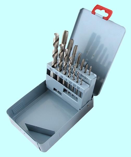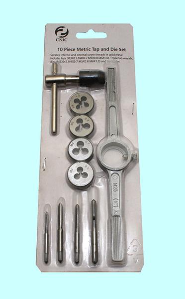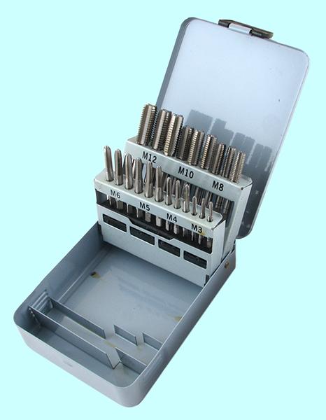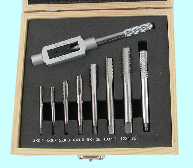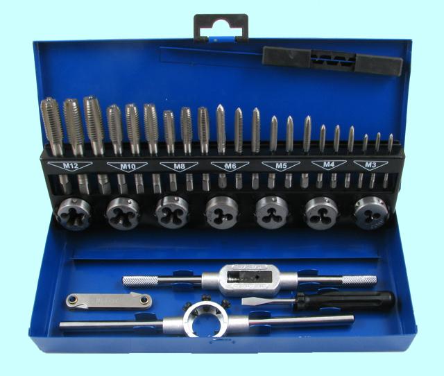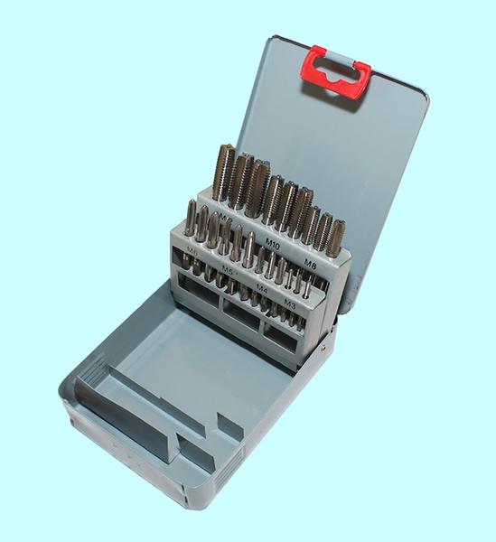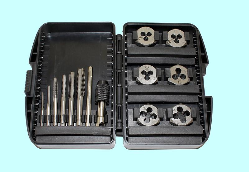 Комплектация набора: метчики однопроходные, плашки круглые М3х0.5, М4х0.7, М5х0.8, М6х1; вороток для метчиков с цанговым зажимом; плашкодержатель
