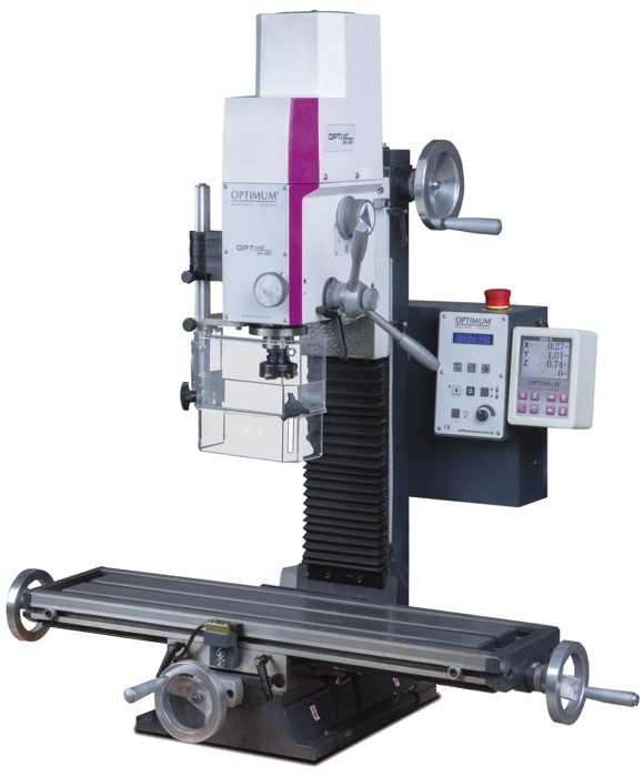 Немецкие фрезерные станки по металлу OPTIMUM предназначены для выполнения металлообрабатывающих работ цилиндрическими, торцевыми, концевыми, фасонными и другими фрезами, а также сверлами. Применяется для обработки горизонтальных и вертикальных плоскостей, пазов, рамок, углов, зубчатых колес, спиралей, моделей штампов, пресс-форм и других деталей из стали, чугуна, цветных металлов, их сплавов и других материалов.