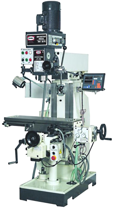 Чешские фрезерные станки PROMA предназначены для выполнения всех видов металлообрабатывающих работ цилиндрическими, торцевыми, концевыми, фасонными и другими фрезами, а также сверлами. Применяются для обработки горизонтальных и вертикальных плоскостей, пазов, рамок, углов, зубчатых колес, спиралей, моделей штампов, пресс-форм и других деталей из стали, чугуна, цветных металлов, их сплавов и других материалов.