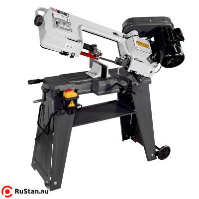 Пила состоит из чугунных деталей с металлическими кожухами. Эта комбинация материалов обеспечивает достаточную жесткость станка при максимальном резе. Пилу можно настроить для резки под углом 45°, 90°. Пильная лента приводится в действие однофазным двигателем. Скорость реза можно частично регулировать прижимной пружиной. Размер и вес пилы делают ее мобильной.
