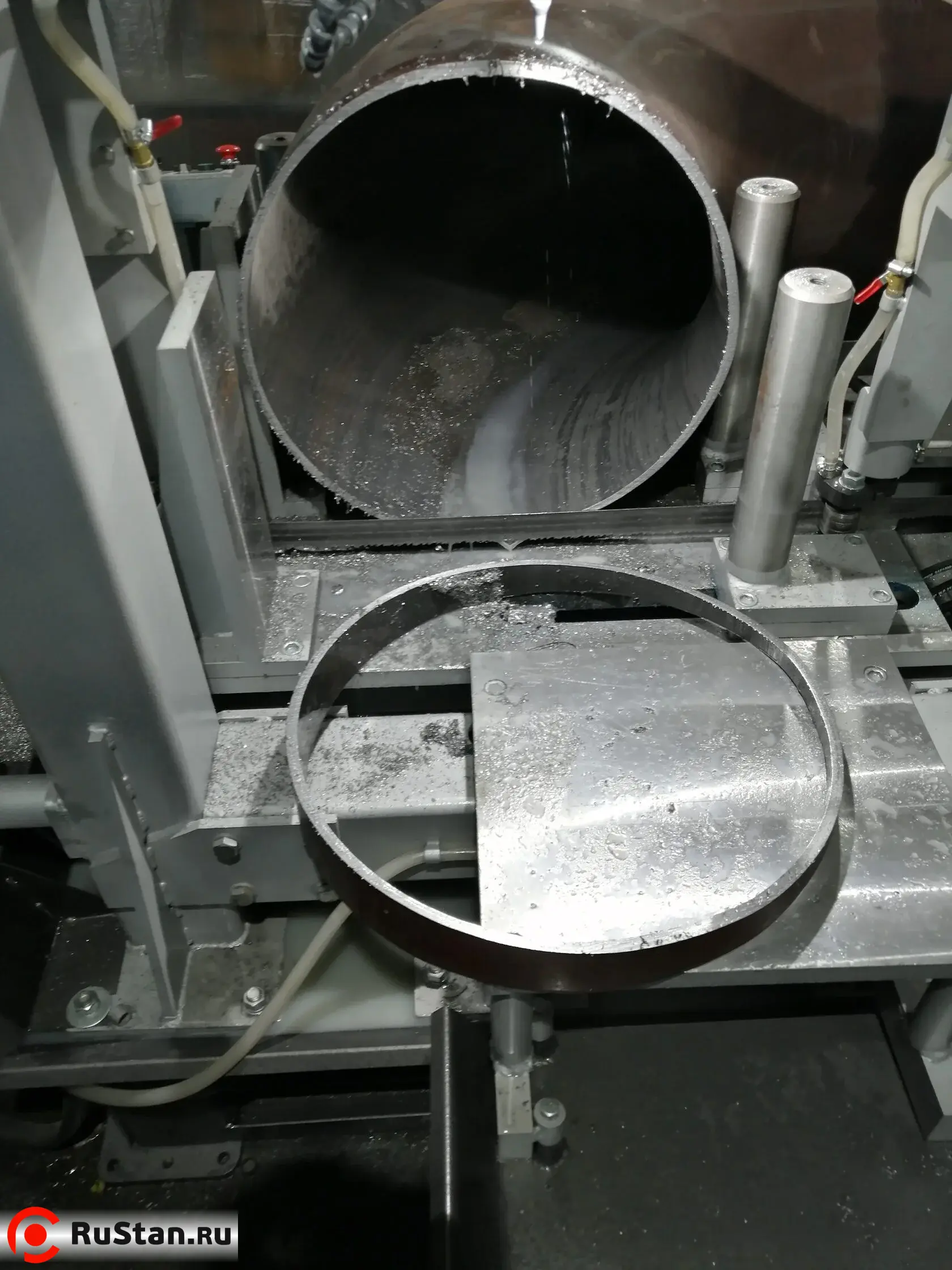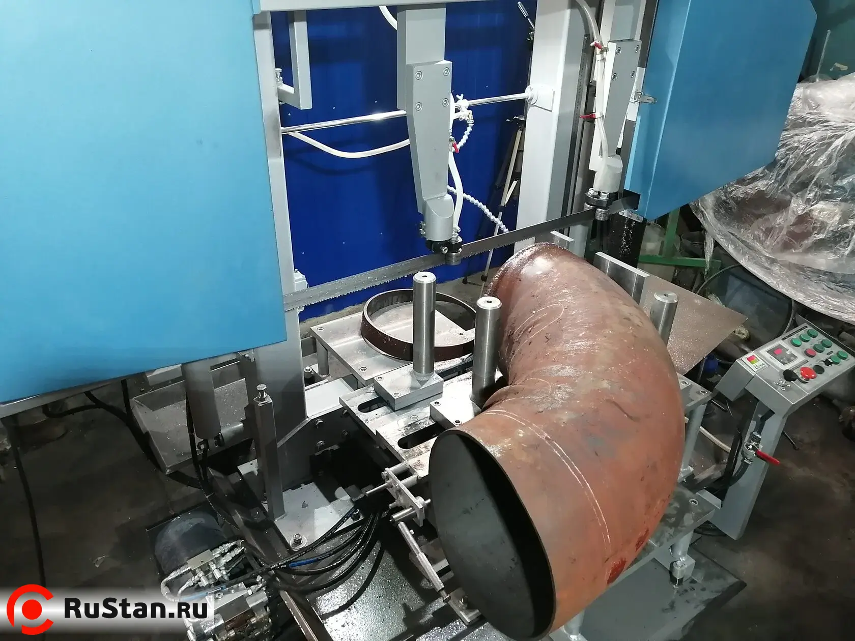 Ленточные станки для порезки отводов труб оборудованы защитными концевыми выключателями открытия кожухов ленточной пилы.