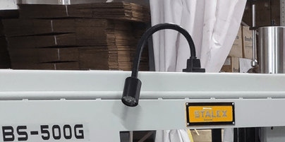 - Предохранительный концевик на кожухе маховика и концевик за маховиком натяжения полотна для контроля/отключения станка при обрыве полотна