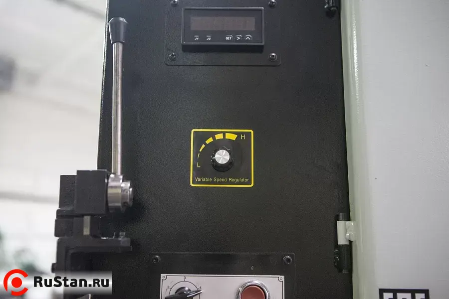 • Станок имеет плавную регулировку скорости (вариатор), а также оснащён направляющей для заготовок на рабочем столе.