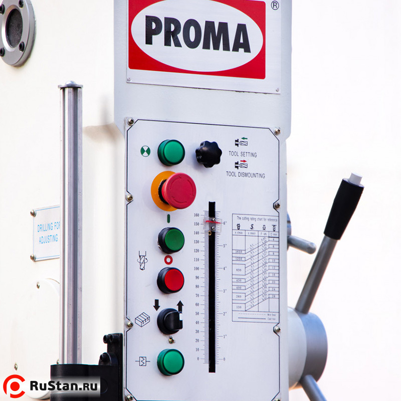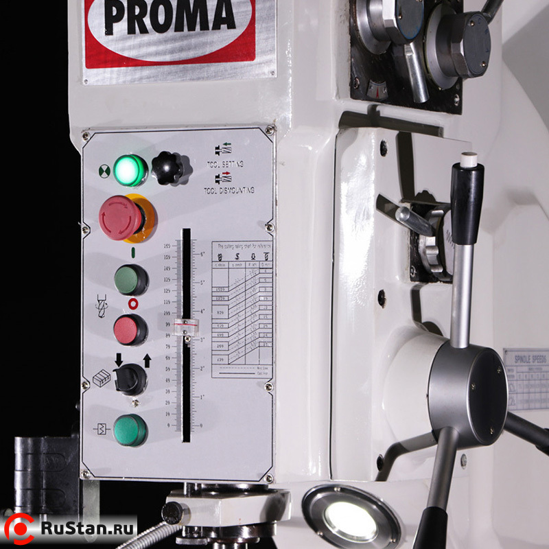 Станок PROMA В-1835G/400 используется для сверления, зенкования, развёртывания отверстий, нарезания резьбы и расточки. Он обладает преимуществами обработки отверстий большого диаметра и широким диапазоном обрабатывающих деталей, что позволяет использовать его не только в производственных, но также и в ремонтных цехах.