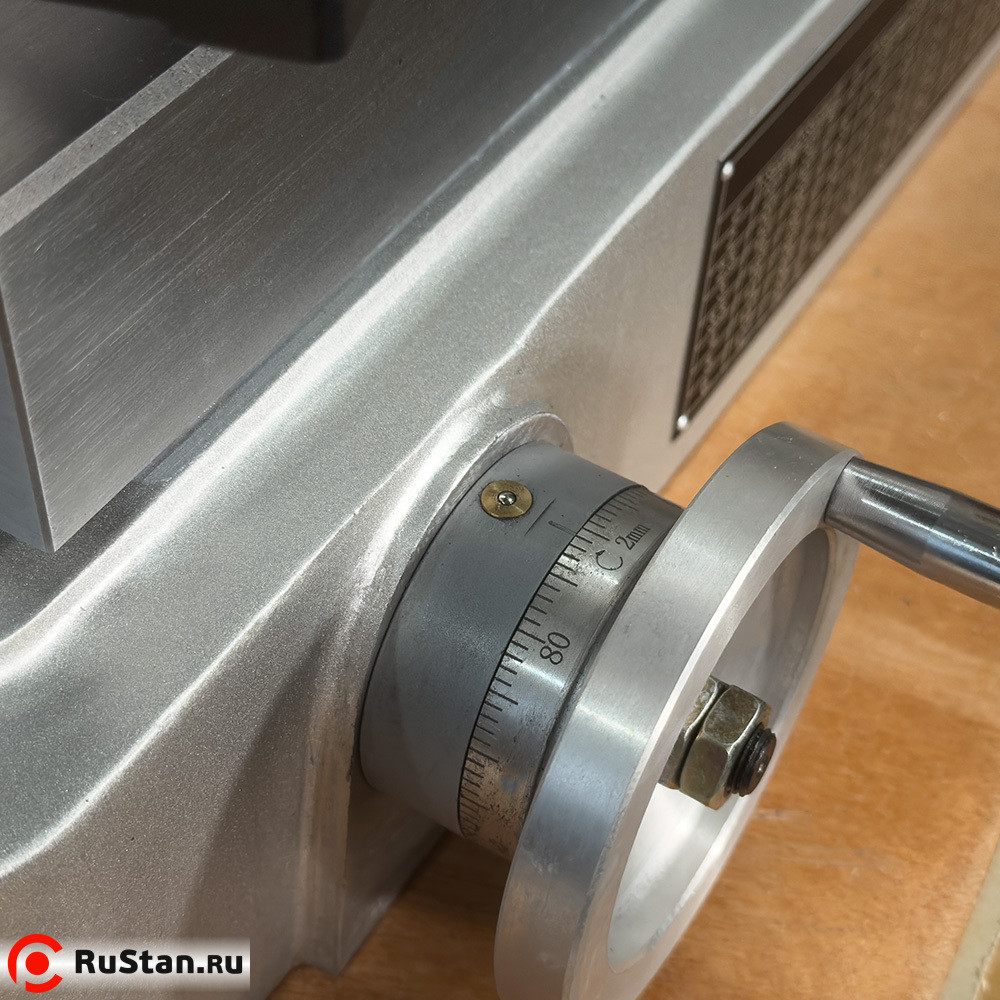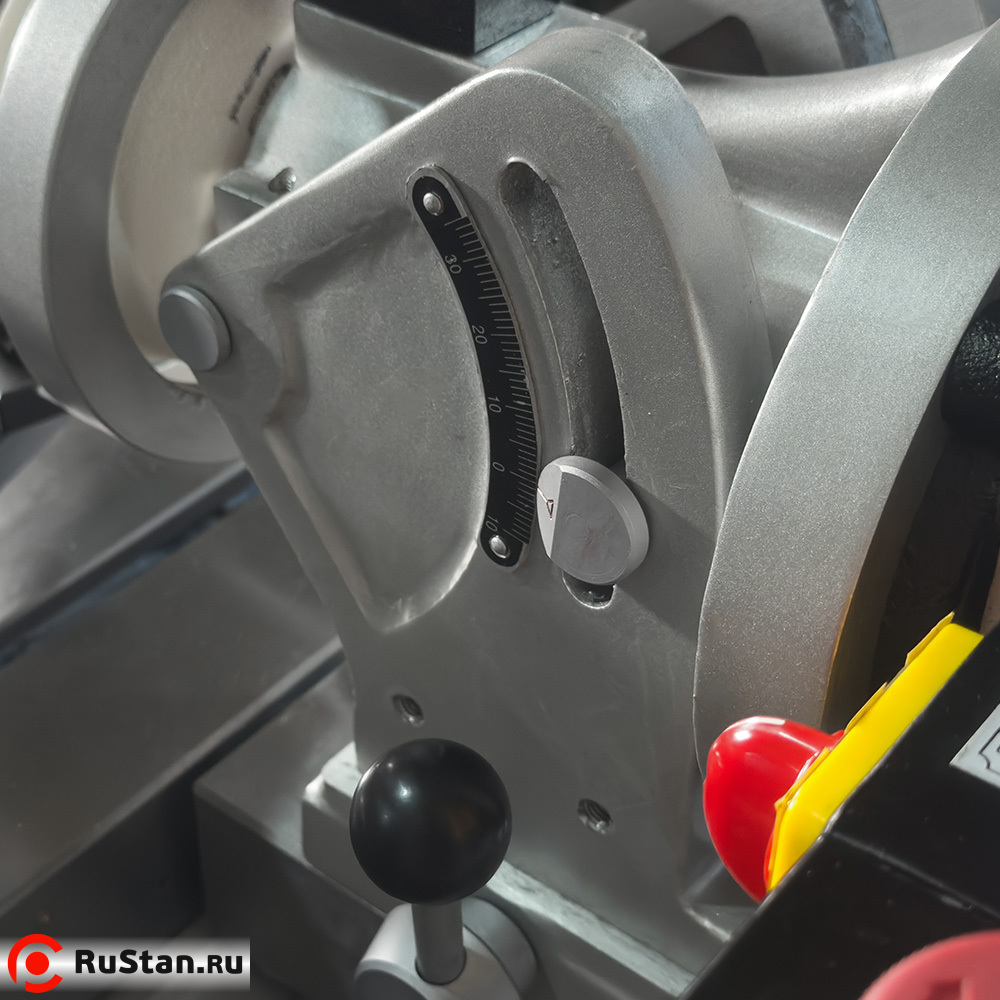 - Рукоятка регулировки наклона шлифовальной бабки