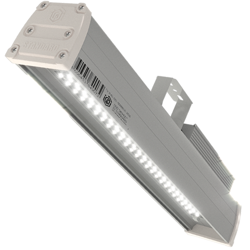 - Надёжность в тяжёлых условиях. Пылевлагозащищённые корпуса (IP65, IP66, IP67), виброустойчивость, широкий диапазон температур делают светильник диодный промышленный оптимальным для производства.